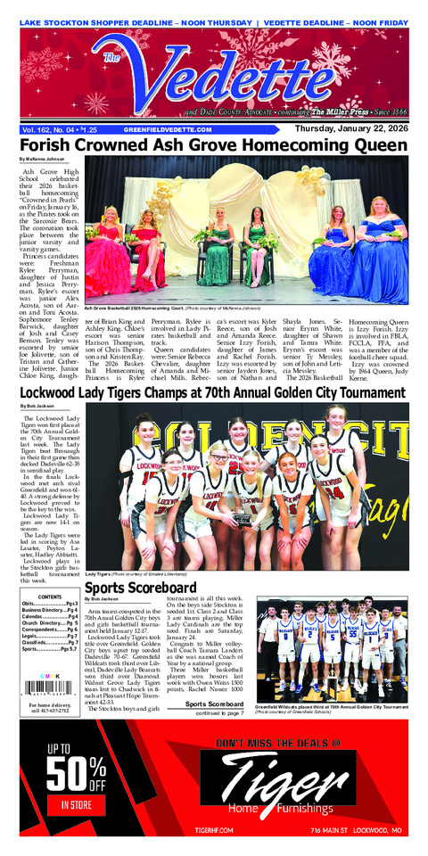 The Lockwood Lady Tigers won first place at the 70th Annual Golden City Tournament last week. The...